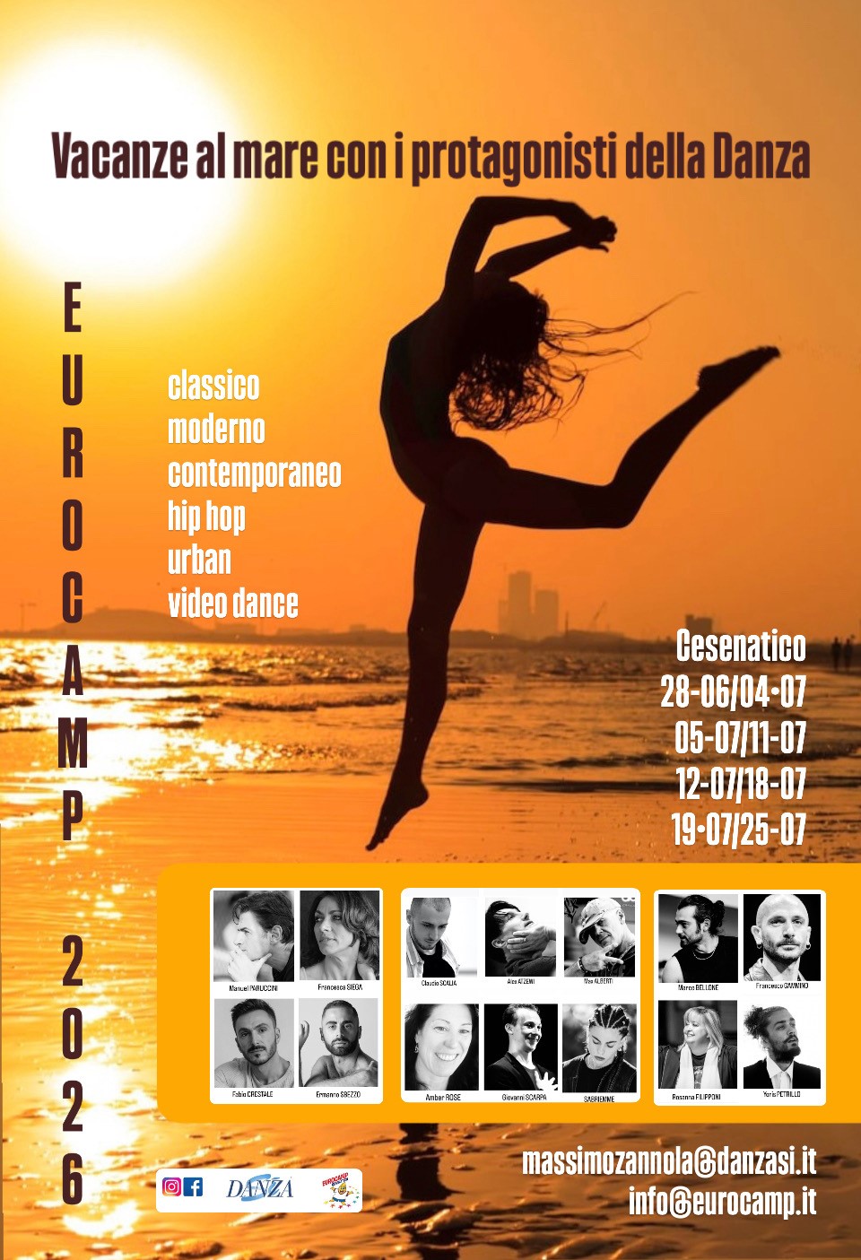 Danzasì/EuroCamp è un’esperienza entusiasmante non solo dal punto di vista del perfezionamento e dell‘approfondimento della danza con maestri di chiara fama, ma anche vivere una realtà dinamica e di relazione con ragazzi impegnati in differenti attività: basket, ginnastica ritmica e artistica, calcio e pallavolo.
